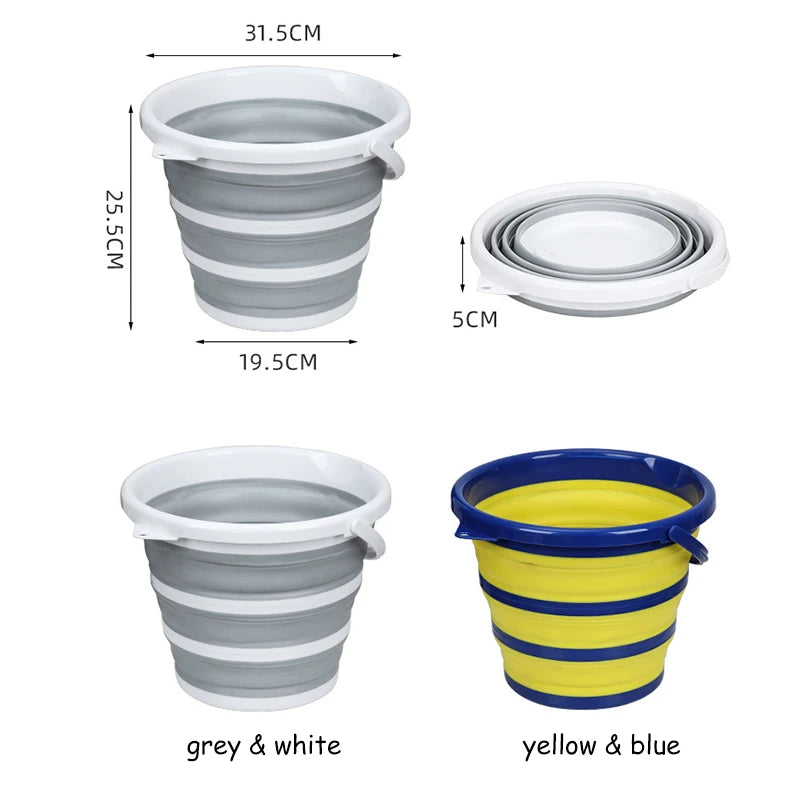 Platzsparend zusammenklappbar: Ein besonderes Highlight dieses Eimers ist seine Fähigkeit, sich zusammenzudrücken. Wenn der Eimer nicht in Gebrauch ist, kann er einfach flach zusammengefaltet werden, um ihn platzsparend zu verstauen. Perfekt für kleine Wohnungen, Wohnmobile oder als Zweit-Eimer im Haushalt.